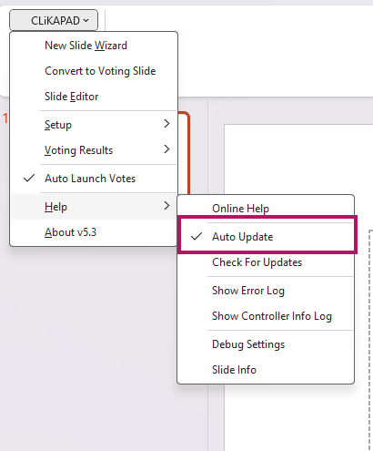 Users can locally turn off auto updates. In PowerPoint, go to Add-ins > CLiKAPAD > Help and then untick Auto Update.